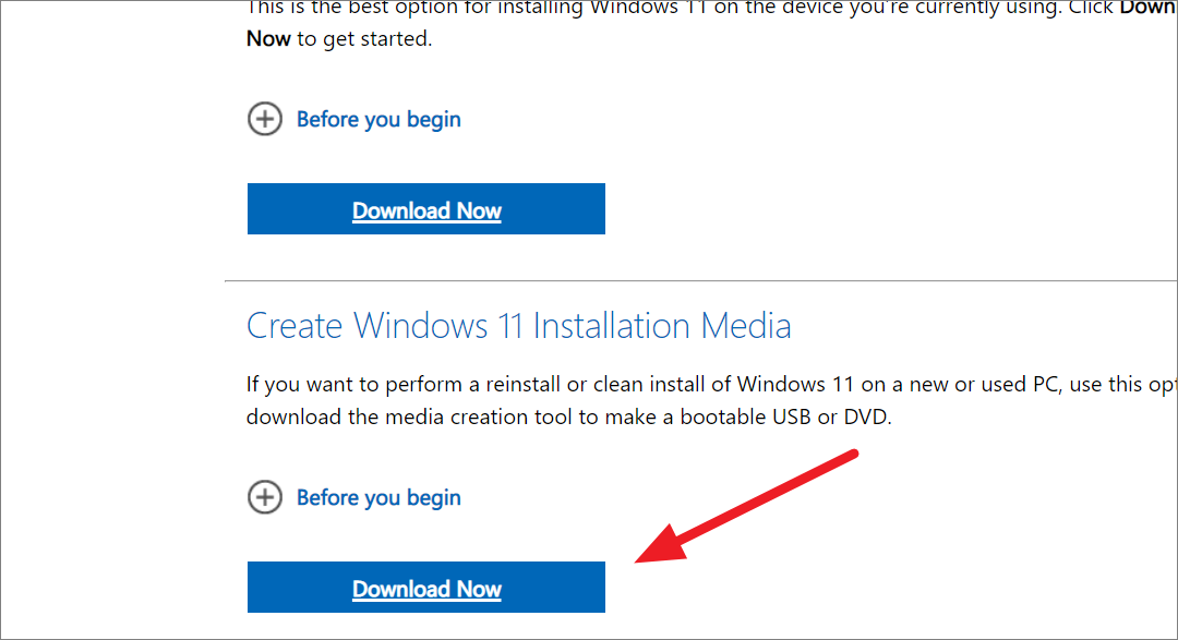 Step 1: Visit the official Windows 11 download page. Under 'Create Windows 11 Installation Media', click 'Download Now'.