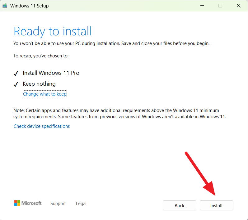 Step 7: The setup will check for updates and prepare for installation. Click 'Install' to begin the repair upgrade.