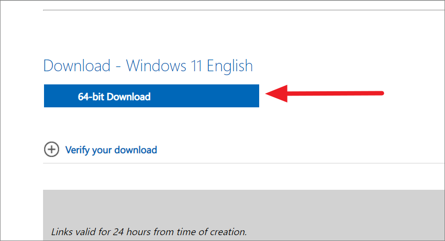 Click the '64-bit Download' button to start downloading the ISO file. The download link is valid for 24 hours.