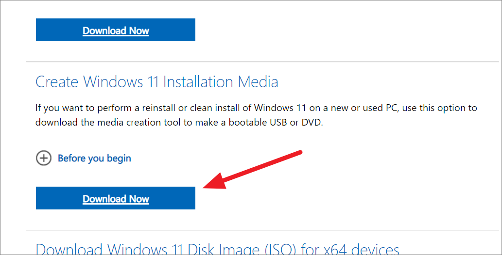 On the same download page, under 'Create Windows 11 Installation Media', click 'Download Now'.