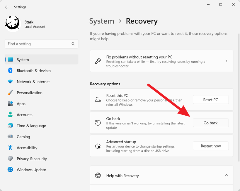 If you recently upgraded to a new version of Windows 11 and are experiencing issues, you can roll back to the previous version within 10 days of the upgrade: