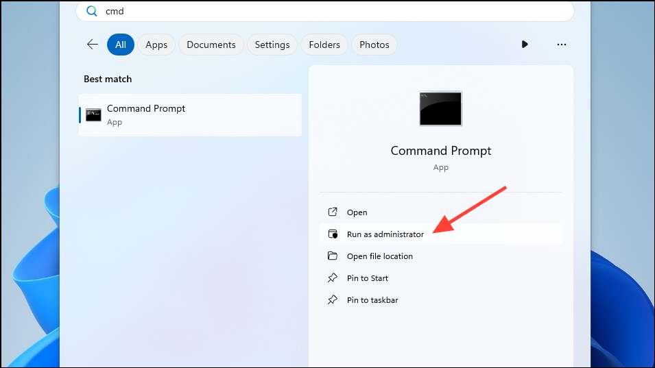 CMDand click on 'Run as administrator'.