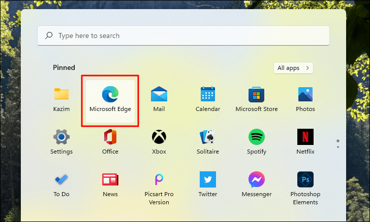 - Click the Start icon on the Taskbar or press the Windows key to open the Start Menu.