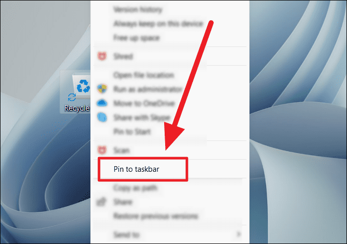 To pin the Recycle Bin to the taskbar, you'll first need to create a desktop shortcut for it.