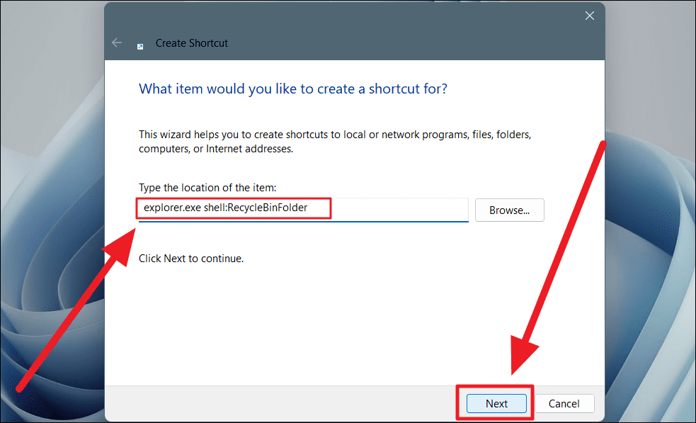 explorer.exe shell:RecycleBinFolderThen, click on the Next button.