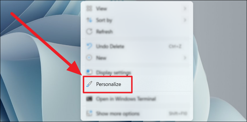 Step 1: Right-click on an empty area of your desktop and select Personalize.