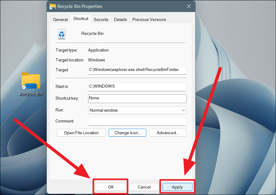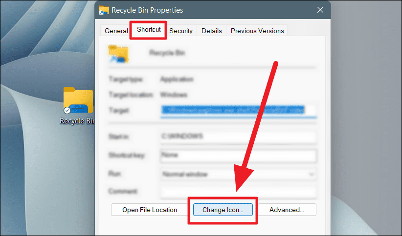 Now that you've created the shortcut, it's time to make it look like the Recycle Bin icon.