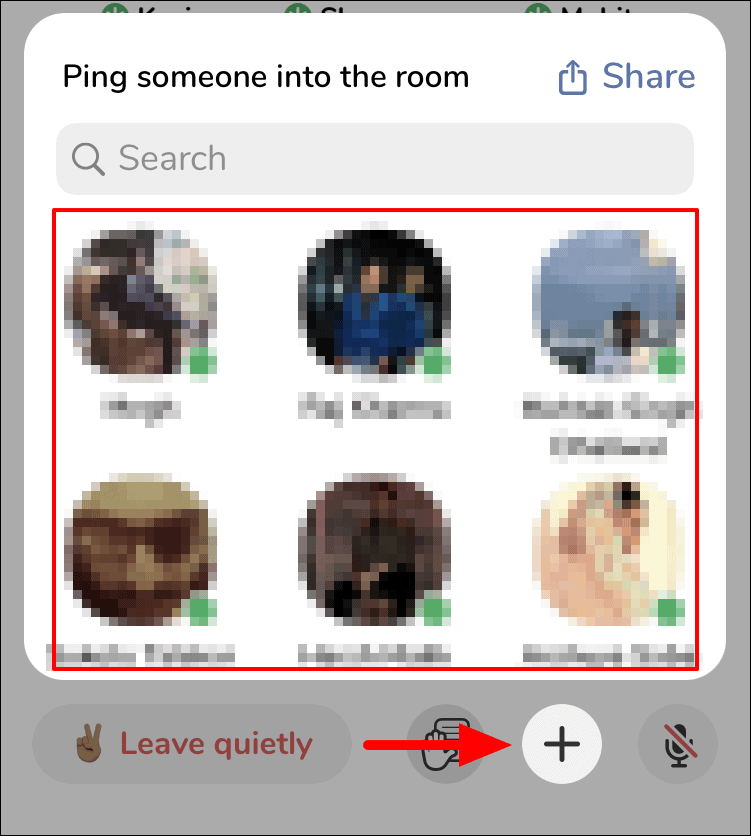 To ping someone, tap on the ‘+’ icon near the bottom-right corner in a room.