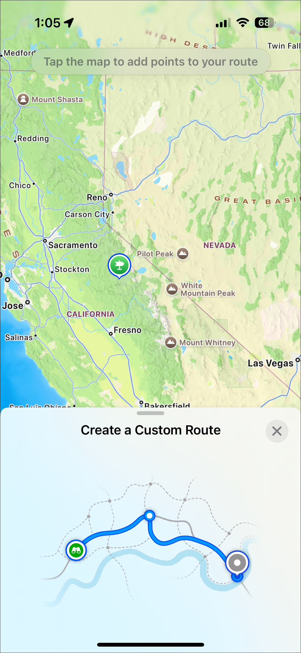 - Then, follow the same steps as above to create a custom route by choosing points on the map and saving it.