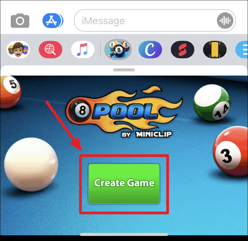 You can also install the game directly through the Messages app. Open a conversation, tap on the App Store icon, search for "8 Ball Pool", and install it from there.