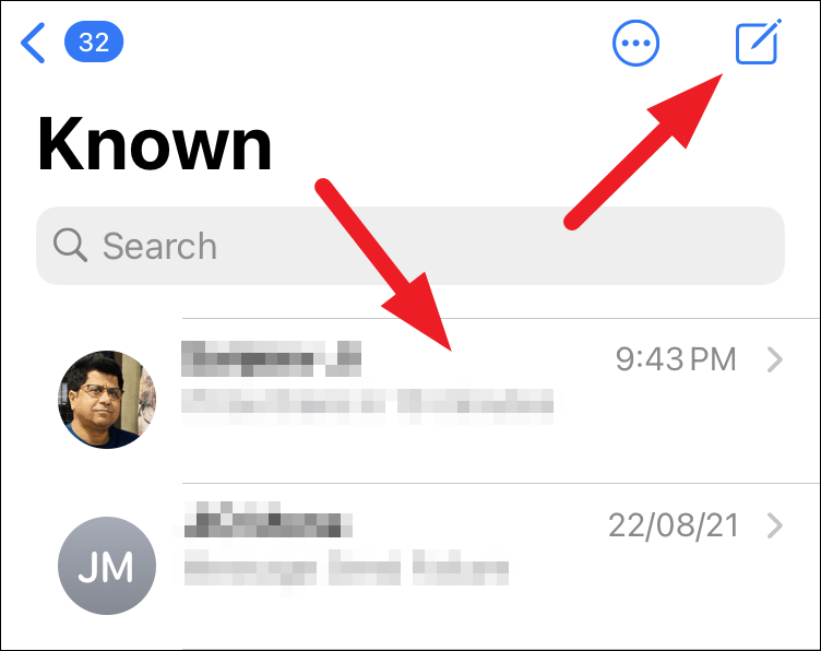 Step 2: Select an existing conversation with the person you want to play with, or start a new message by tapping the compose icon at the top right.