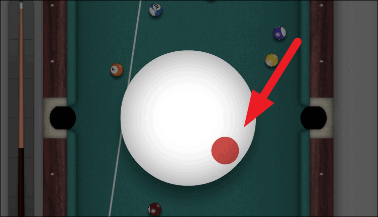 Step 9: To control spin, tap the cue ball icon on the right side of the screen. Tap on the ball to adjust the point of contact (indicated by a red dot), which affects the cue ball's movement after the shot. Tap anywhere outside the overlay to return to the game.