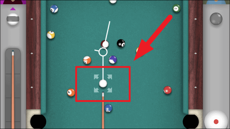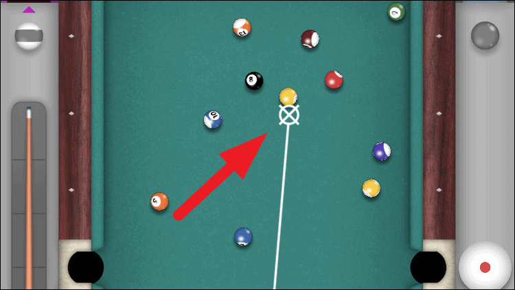 Step 8: Use your finger to adjust the aim by dragging sideways across the screen. Align the cue towards the target ball.
