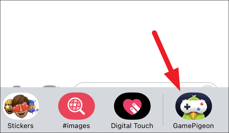 Step 3: In the conversation view, locate the app bar above the keyboard and scroll it sideways to find the GamePigeon icon. Tap it to view the available games.