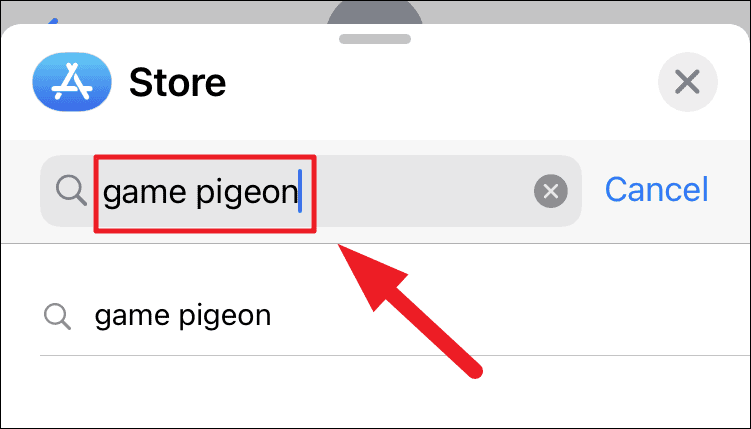 Step 6: In the search bar, type game pigeon and tap the Search button on the keyboard.