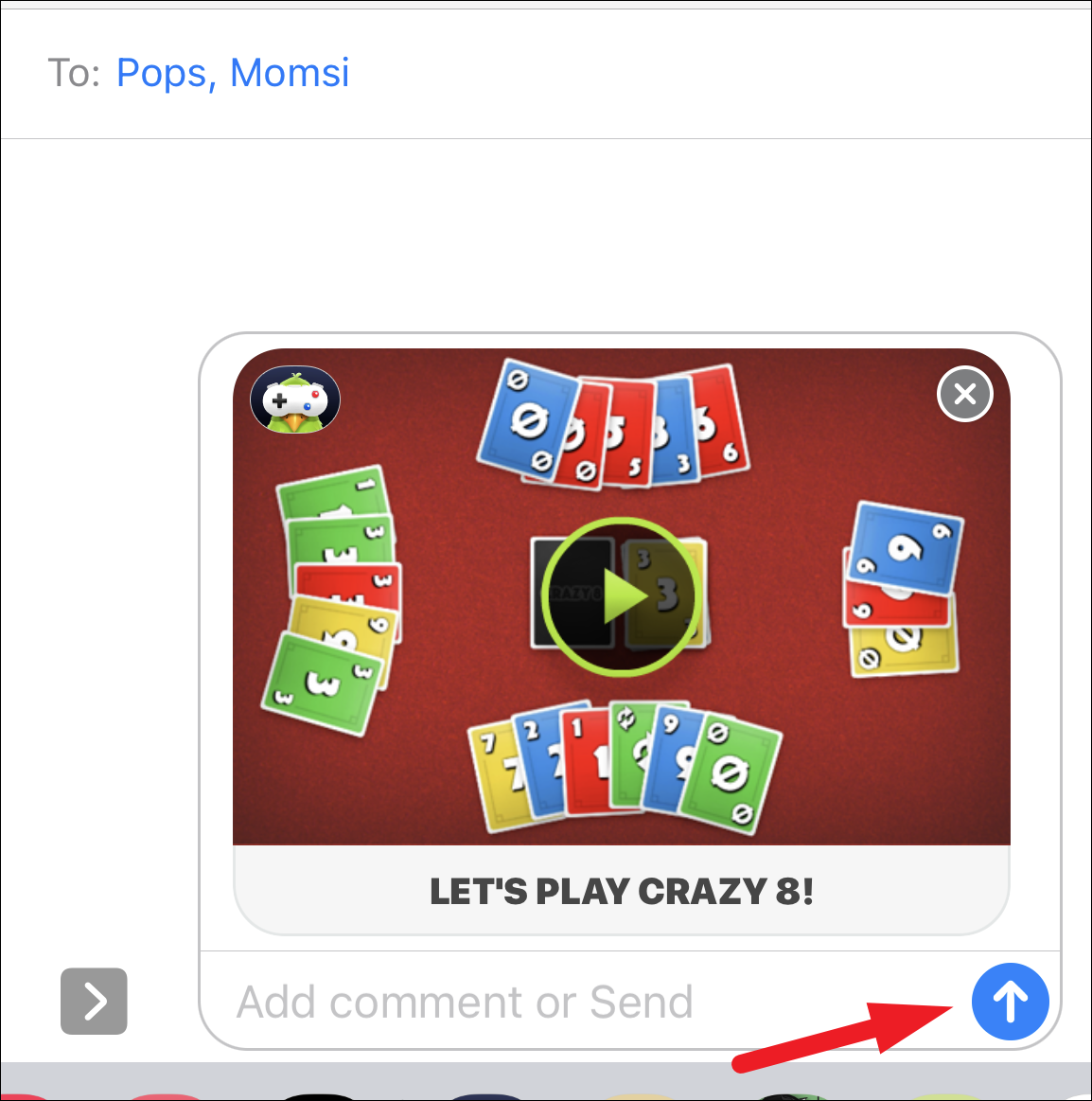 Once you and your opponents have downloaded the game you can easily start a game from the Messages app. However, do note, Crazy 8 requires at least 3 players (including you) to start the game.