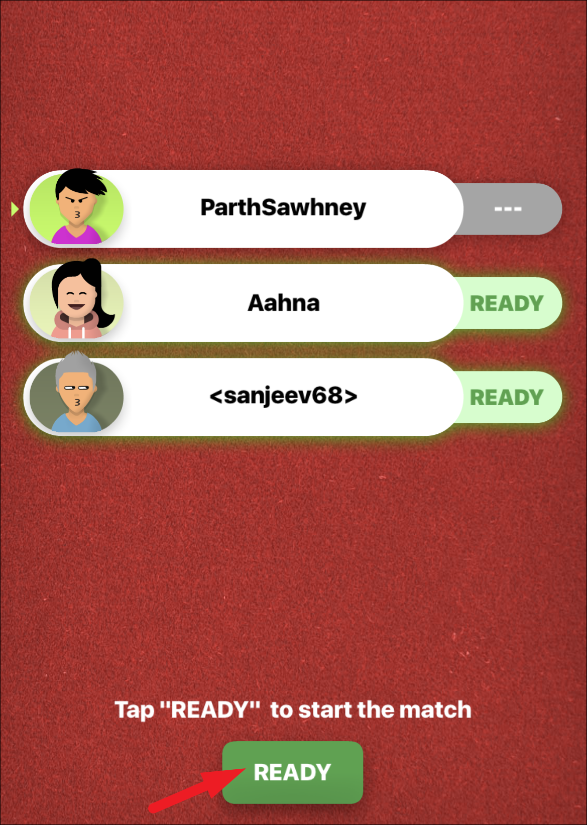 Next, tap on the game tile in the conversation thread to open the game screen. Now, Each and every player will have to tap on the ‘Ready’ button in order to start the game. Once all players join in and tap on the ‘Ready’ button on their screen, the game will start.