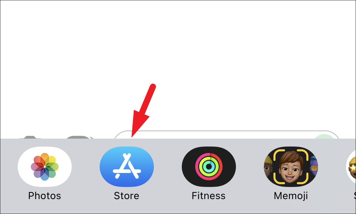 Now, tap the grey-colored ‘App Store’ icon from the bottom section of the screen to reveal the iMessage store app bar.