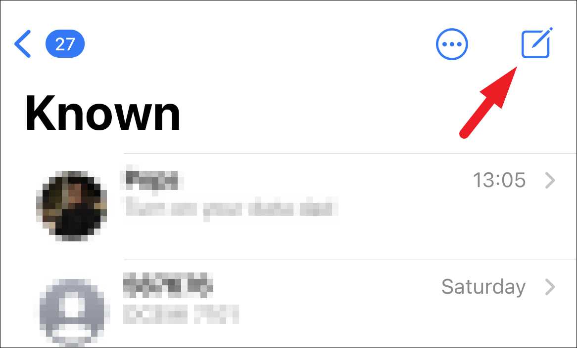 Next, tap on the ‘Compose new message’ button to initiate a new group conversation, since Crazy 8 requires at least three people to play.