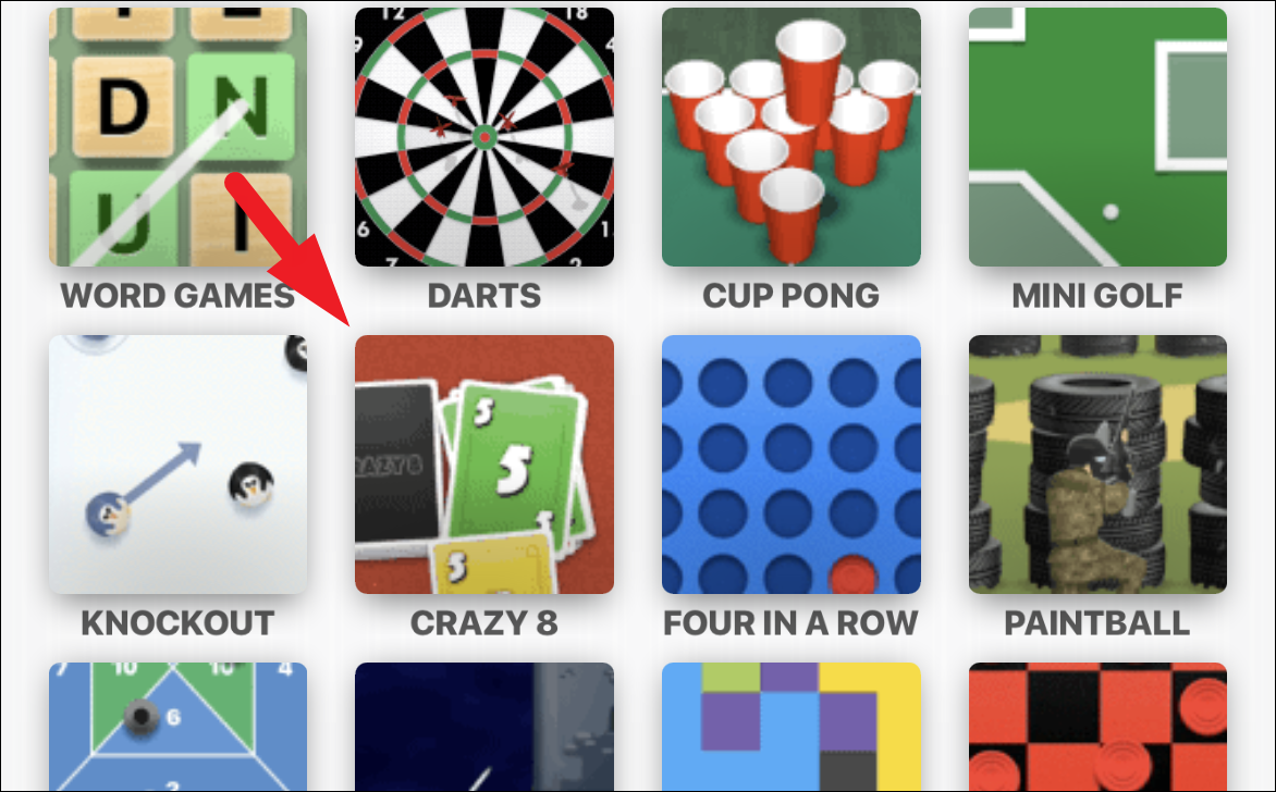 Now, locate the ‘Crazy 8’ tile from the grid of options and tap on it to load the game.