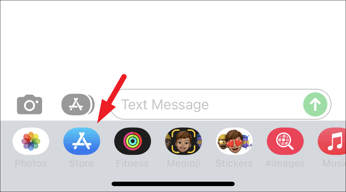Now, from the conversation view, tap on the grey ‘Appstore’ icon to expand the section.