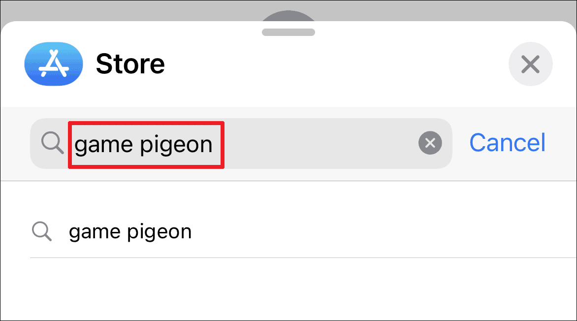 Now, from the overlay window, tap on the search icon and type Game Pigeon, and tap the ‘Search’ button present on the bottom right of your keyboard.