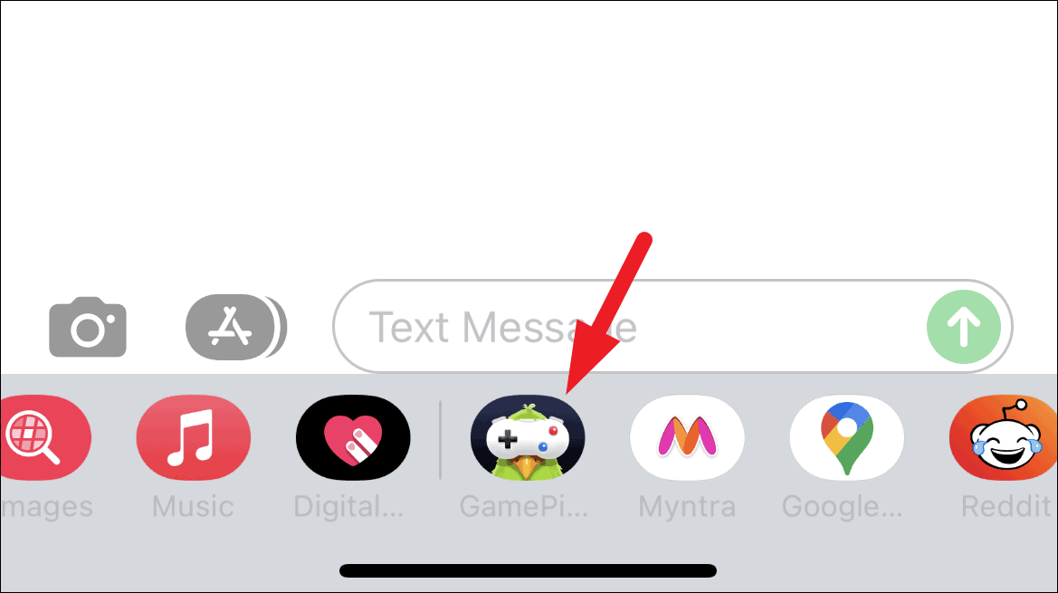 Next, from the expanded section, swipe right to left to locate ‘GamePigeon’ app and tap on it.