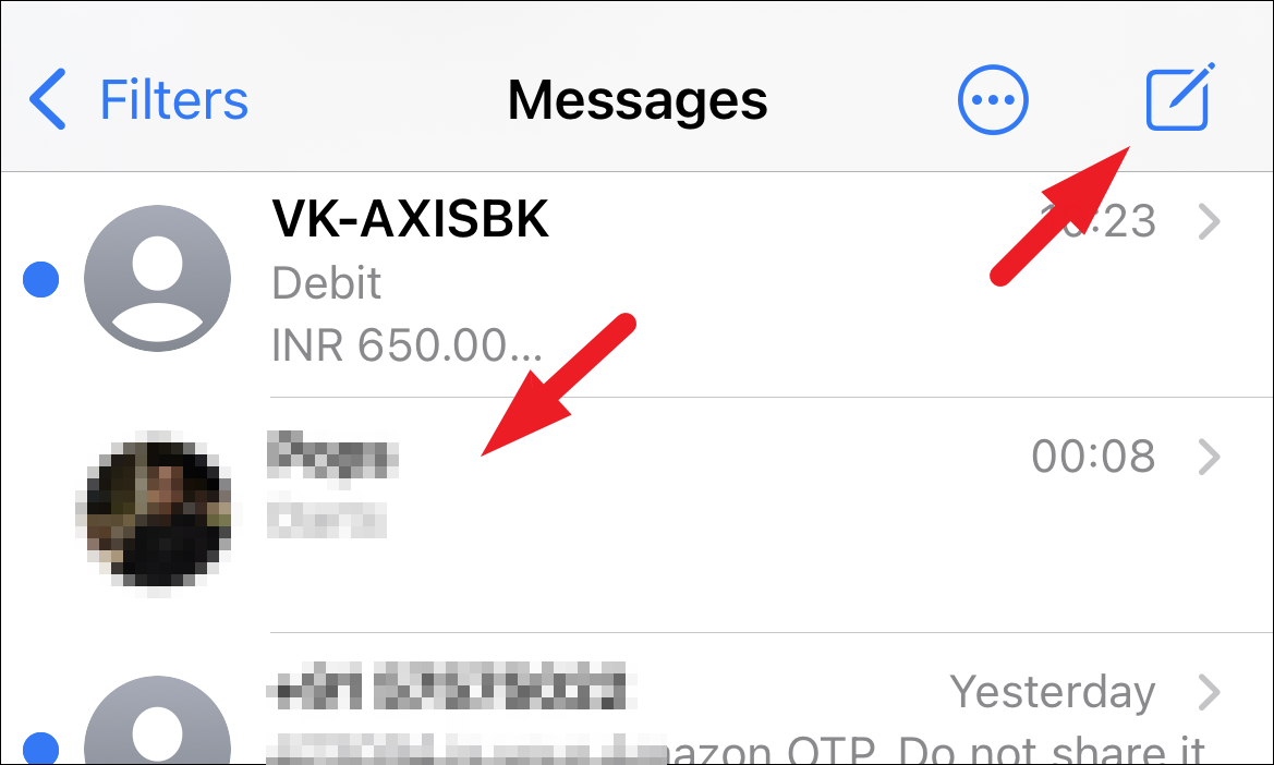 Then, tap on the existing conversation head to continue. Otherwise, click on the ‘Compose’ message button to initiate a new conversation with a contact.