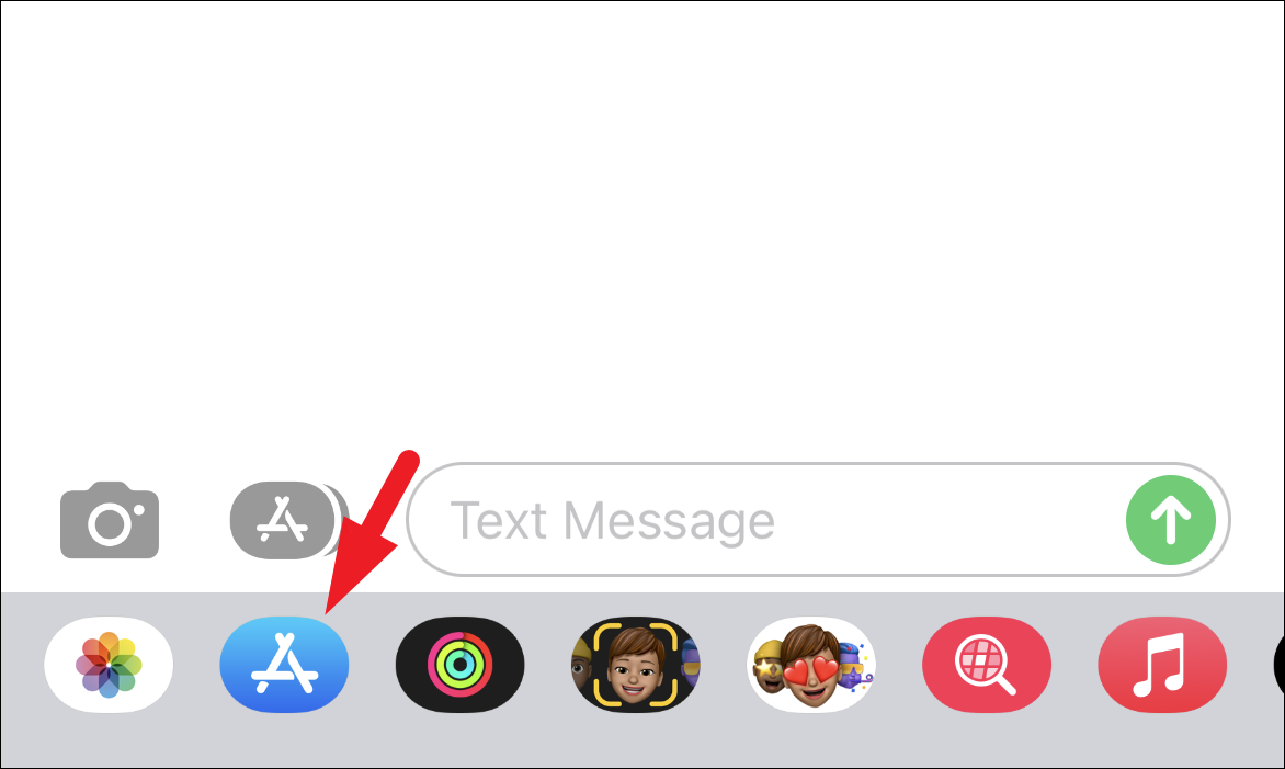 Once you are on the conversation screen, click on the grey-colored ‘App Store’ icon to reveal the iMessage apps.