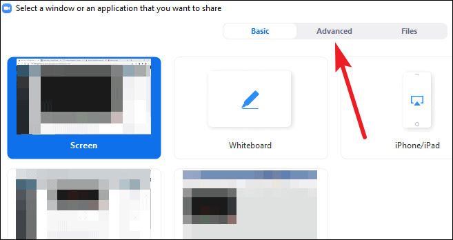 Screen sharing window will open. Navigate to the ‘Advanced’ tab.