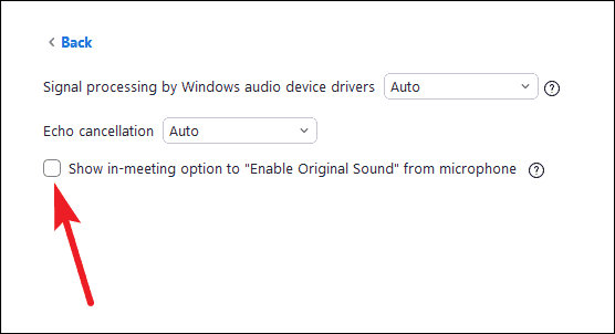 Advanced audio settings will open. Check the option for ‘Show in-meeting option to “Enable original sound” from microphone’.