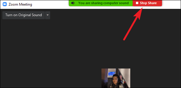 You’ll see a “You are sharing computer sound” message at the top of your meeting window, just like when you’re sharing your screen. Click the ‘Stop Share’ button at any time to stop sharing the music.