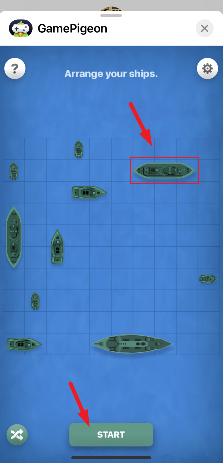 Since you sent out an invitation, your opponent gets to start the game. They can do that by dragging one of the ships present on the grid and arrange them as per their preference. Then, tap on the ‘Start’ button to start the game present at the bottom of the screen.