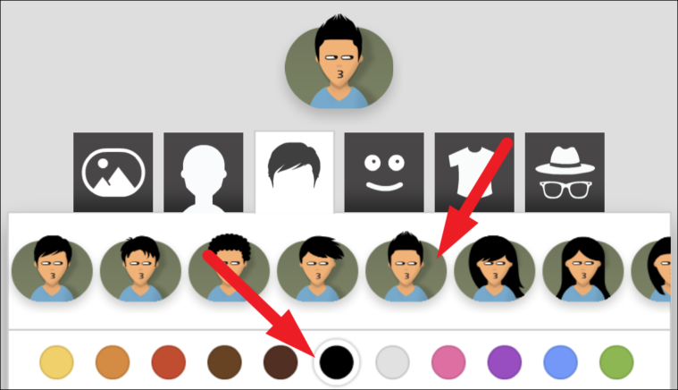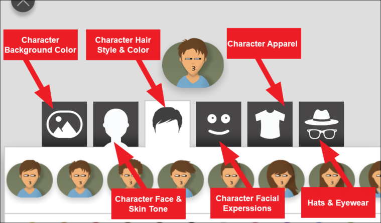 As you open the ‘Settings’ pane, you will see a host of customization options for your character. You can customize the background color for your character which you see during the gameplay, the skin tone of the character, along with hairs, facial emotions, clothes, and make the character wear hats and eyewear (as labeled in the screenshot below).