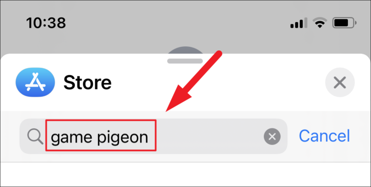 Now, type game pigeon in the search box and tap on the ‘search’ button present on the bottom left corner of the keyboard.