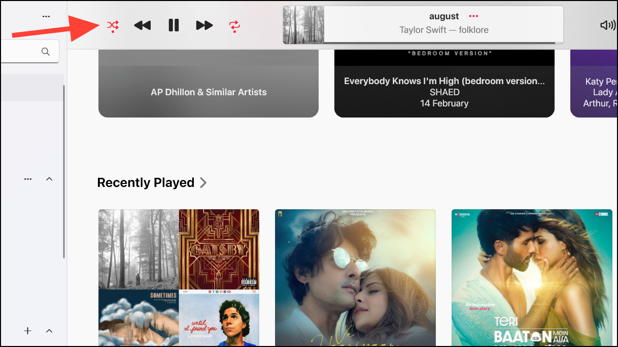 - There's also a shuffle button that you can use to shuffle your music even when you're listening to an album/ playlist on repeat to keep things fresh! This doesn't work, of course, when you've set the song, and not the entire playlist/ album, on repeat.