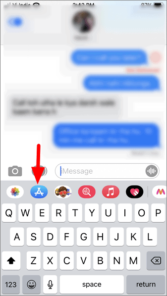 Step 1: Open the Messages app on your iPhone and select the conversation with the friend you want to play Tanks with. Tap the App Store icon located in the app bar just above the keyboard.