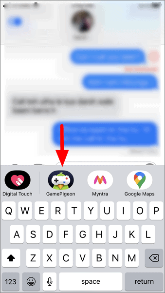 Step 3: Once the installation is complete, return to your conversation in Messages. Swipe through the app bar above the keyboard and select the GamePigeon icon to view the list of available games.