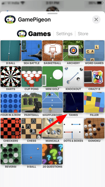 By installing the GamePigeon extension, you unlock a variety of fun games like Tanks to enjoy with your friends directly through iMessage.