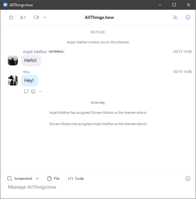 Zoom allows you to pop-out chats into a separate window. It helps when you’re having chat with multiple people, either individually or in groups in a channel. It makes it easier to toggle between different windows rather than different chats from the same window in the Zoom app.