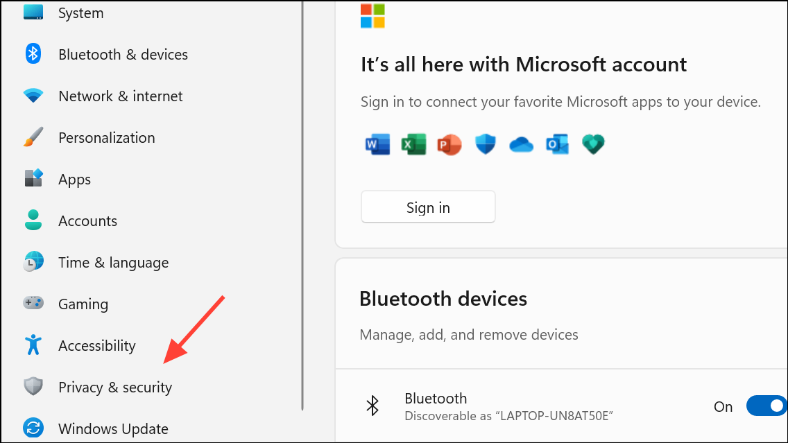 Step 1: Open the Windows Settings app. On Windows 10, go to Start > Settings > Privacy. On Windows 11, go to Start > Settings > Privacy & security.