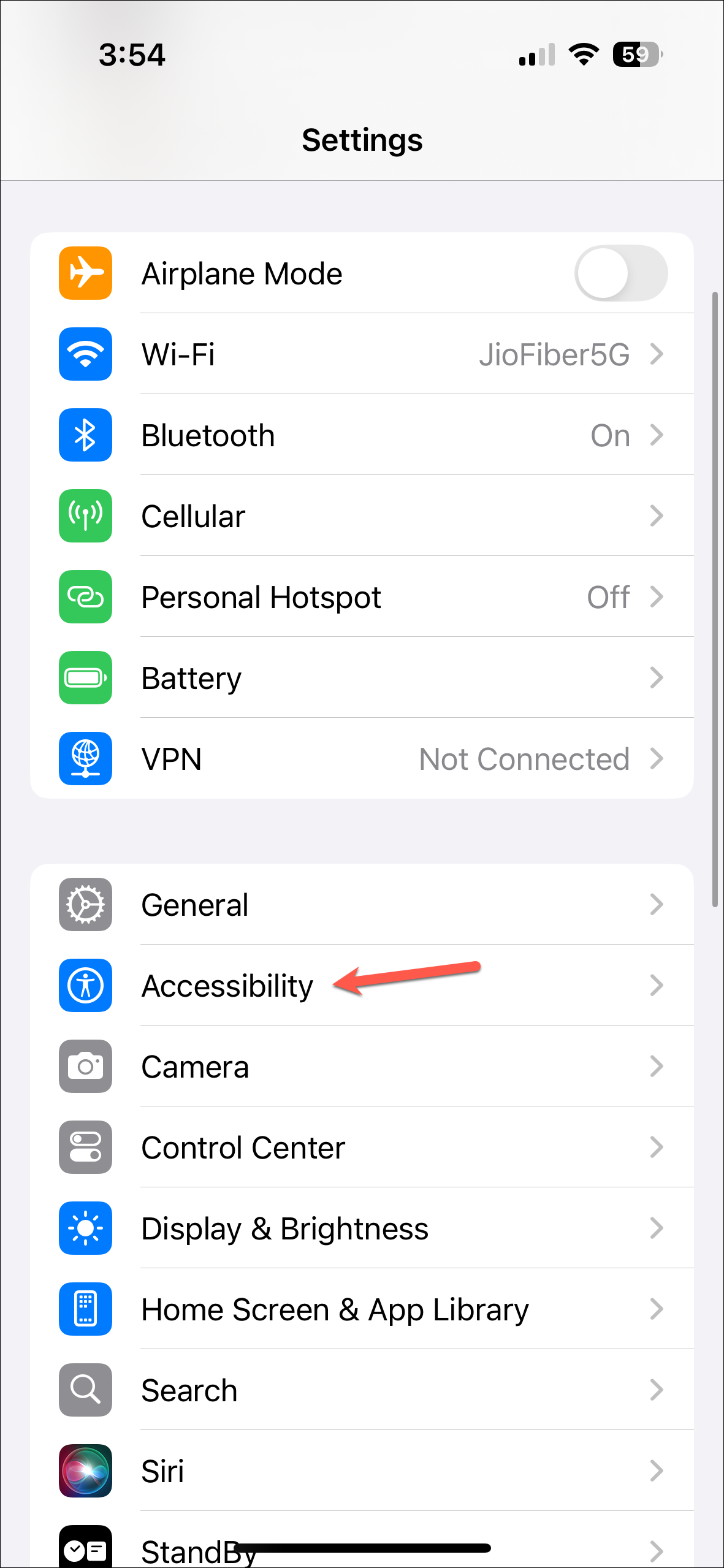 - Then, go to the 'Accessibility' settings.