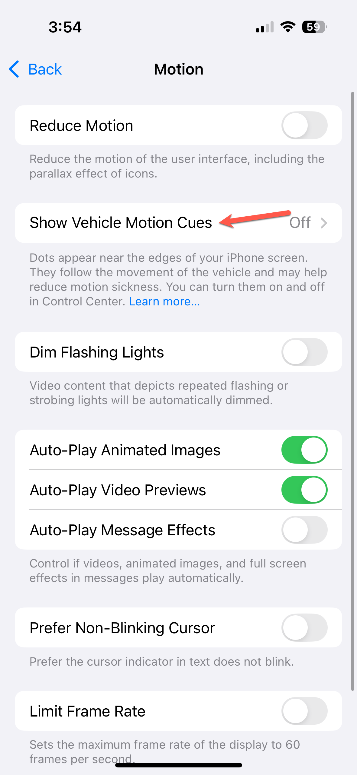 - Go to the 'Show Vehicle Motion Cues' option.