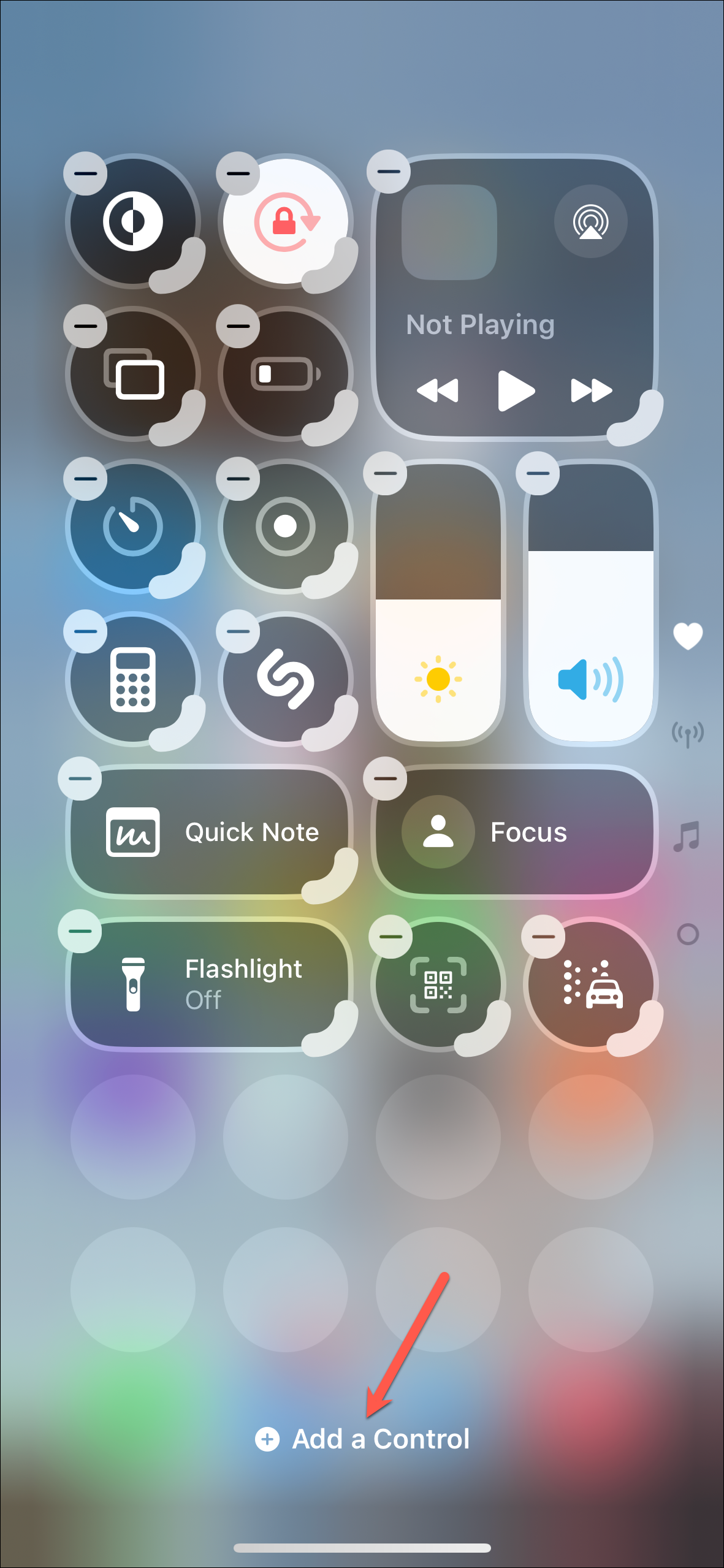 - Tap on 'Add a Control'.