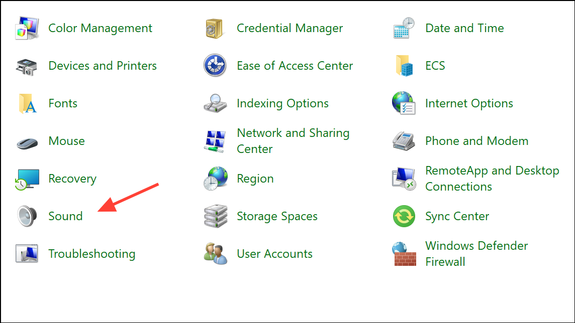 Step 2: Open Control Panel and navigate to Hardware and Sound > Sound. Go to the Playback tab.