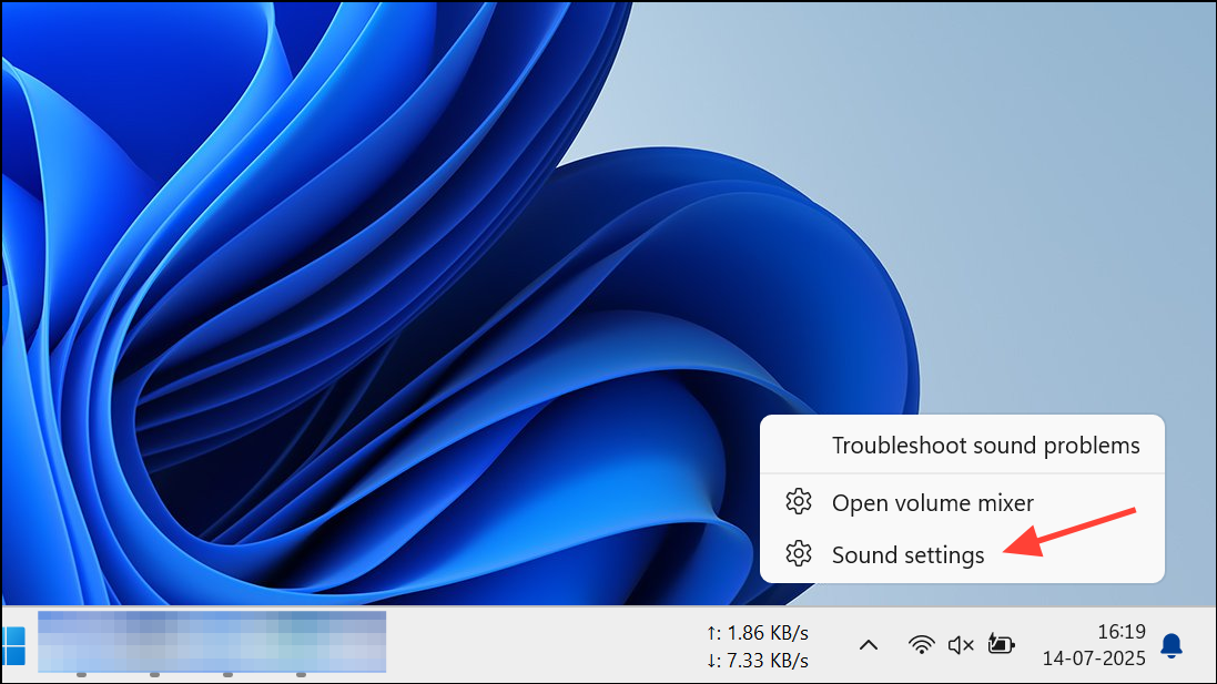 Step 1: Right-click the speaker icon in the taskbar and select Open Sound Settings.