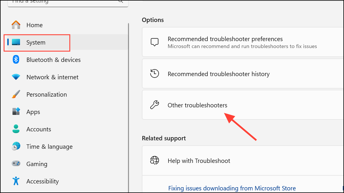 Step 1: Open Settings (Win + I), then go to System > Troubleshoot > Other troubleshooters.