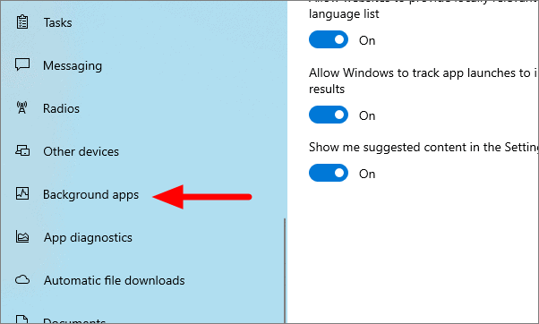 In privacy settings, scroll down until you find ‘Background apps’ and then click on it.
