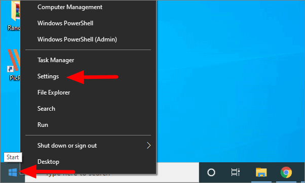Right-click on the Windows icon at the left corner of the Taskbar and select ‘Settings’.