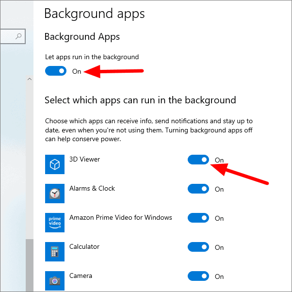 Here, you can either put all background apps or select individual programs to sleep. To put all background apps to sleep, click on the on-off toggle at the top of the window. To put an individual app to sleep, click on the on-off toggle in front of the app you want to put to sleep.